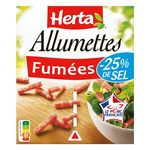 Les allumettes fumées -25% de sel HERTA, c'est toute la saveur des allumettes avec 25% de sel en moins*. Ces découpes de viande de porc fines se marient parfaitement à vos petits plats du quotidien (pâtes, quiches…). *Teneur en sel réduite de 25% par rapport à la moyenne de la catégorie.