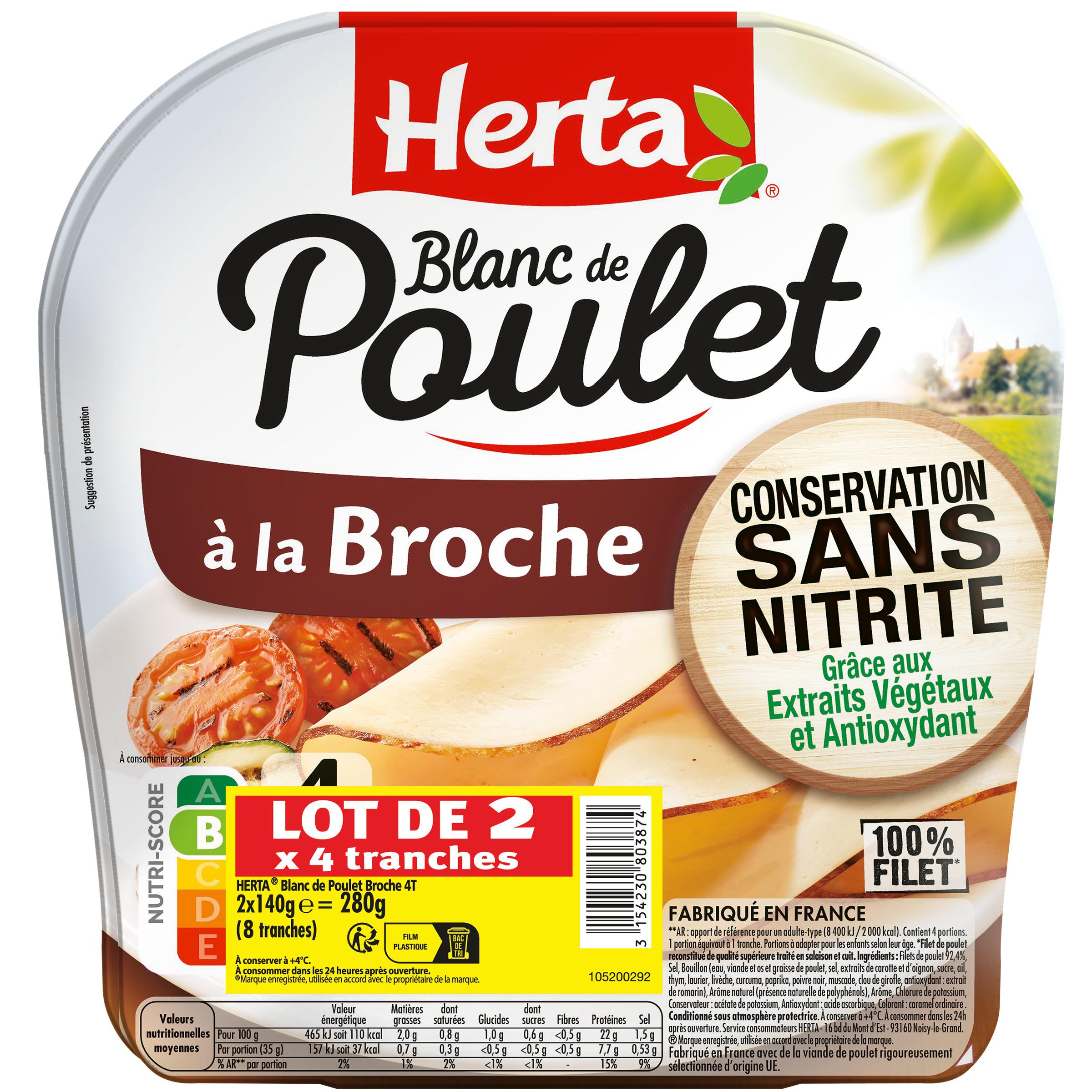 Découvrez les recettes de la gamme blanc de poulet Conservation Sans Nitrite grâce aux extraits végétaux et antioxydant HERTA : le premier* blanc de poulet du marché au mode de conservation sans nitrite. Une recette simple et savoureuse qui allie le bon goût de la volaille à celui du romarin. La gamme blanc de poulet c'est également une texture plus généreuse qui permet une meilleure mâche pour le plaisir des familles au quotidien. *1ère marque distribuée à l'échelle nationale en grandes surfaces alimentaires.