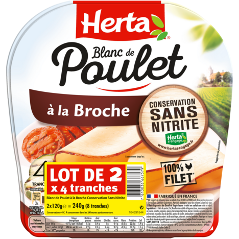 Filet de poulet de Qualité Supérieure traité en salaison cuit et rôti