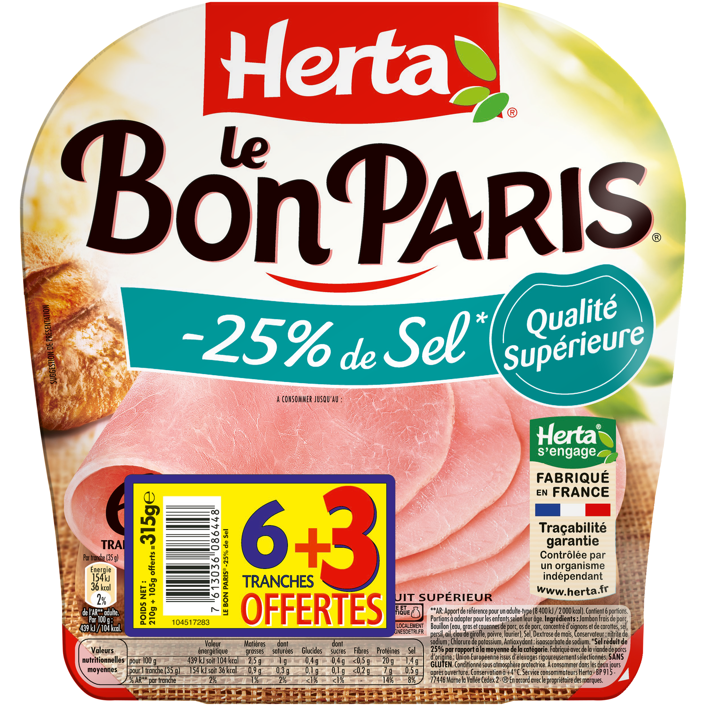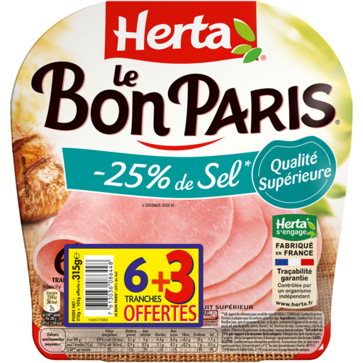 Bon Paris tranches de jambon taux sel réduit