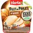 Ingrédients: Filets de poulet, sel, bouillon de volaille et légumes (eau, morceaux de poulet, sel, sucre, carottes, oignons, épices et aromates (ail, thym, laurier, livèche, curcuma, paprika, poivre noir, muscade, clou de girofle), graisse de poulet, antioxydant : extrait de romarin), sucre, arôme naturel (présence naturelle de polyphénols), antioxydant : acide ascorbique, colorant : caramel ordinaire.