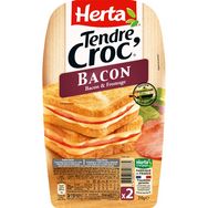 Savourez les croque-monsieur TENDRE CROC' Bacon : deux tranches de pain de mie à la fois croustillantes et moelleuses avec une garniture fondante au bacon et au fromage. Au four ou à la poêle, tout le monde se régale ! Croque-monsieur à base de fromage fondu 26% et de bacon cuit fumé 20%