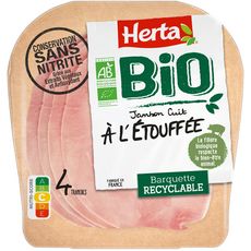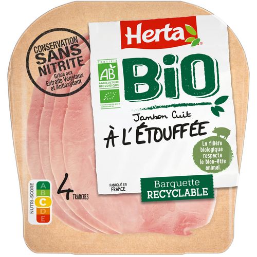 Découvrez le jambon BIO Conservation Sans Nitrite à l'Etouffée de HERTA : le premier jambon de marque nationale BIO et conservation sans nitrite. Du jambon frais de porc biologique, du bouillon travaillé avec des arômes naturels, du sucre, du sel et de l'acide ascorbique (Vitamine C) pour son rôle antioxydant! Retrouvez dans cette recette BIO, nos belles tranches et la cuisson lente à l'Etouffée Herta, qui plairont à toute la famille !