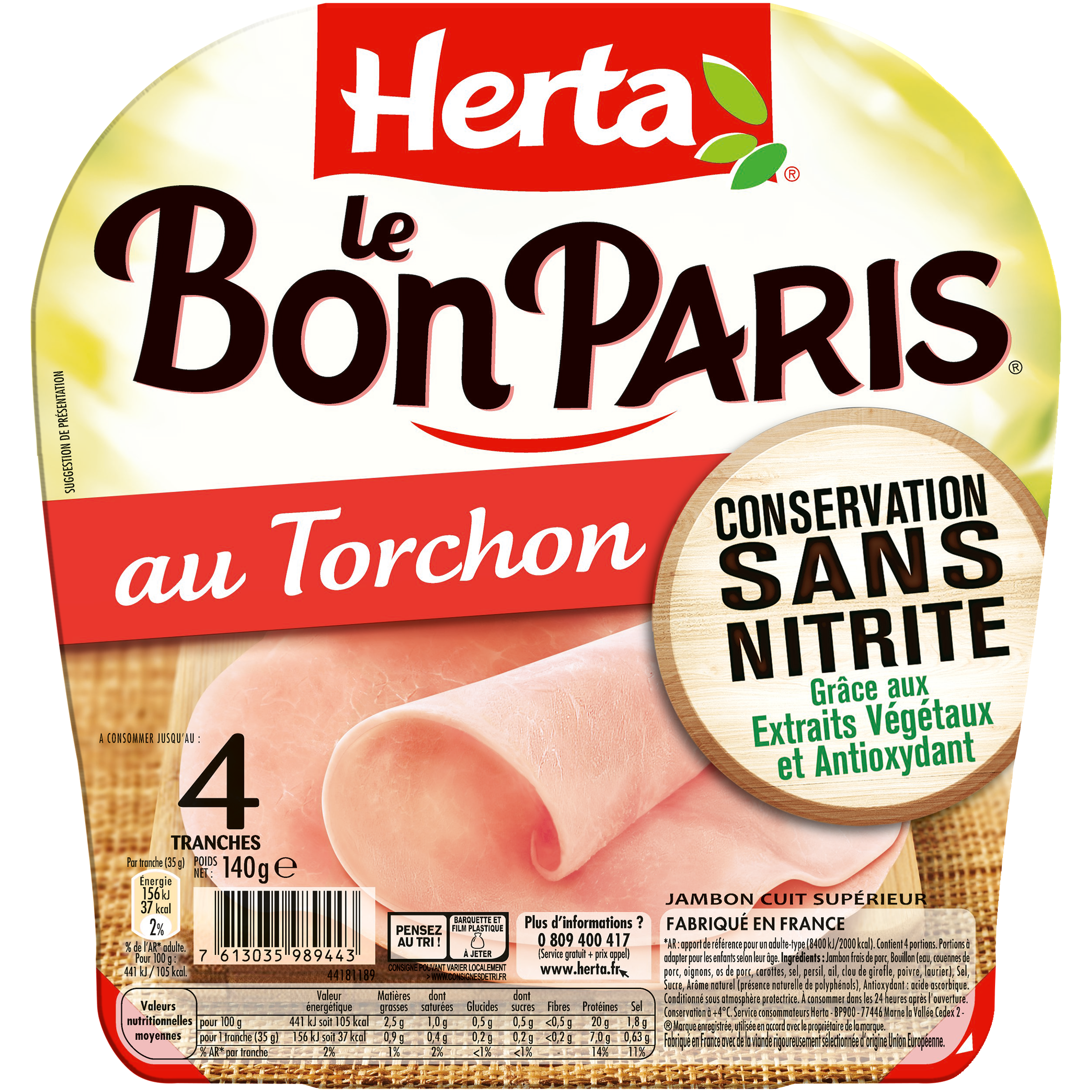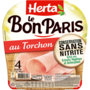 Ingrédients: Jambon frais de porc, bouillon (eau, couennes de porc, oignons, os de porc, carottes, sel, persil, ail, clou de girofle, poivre, laurier), sel, sucre, arôme naturel (présence naturelle de polyphénols), antioxydant : acide ascorbique.