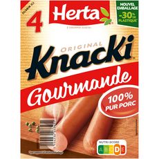 Les saucisses KNACKI Gourmande Fumée, c'est une viande 100% pur porc.