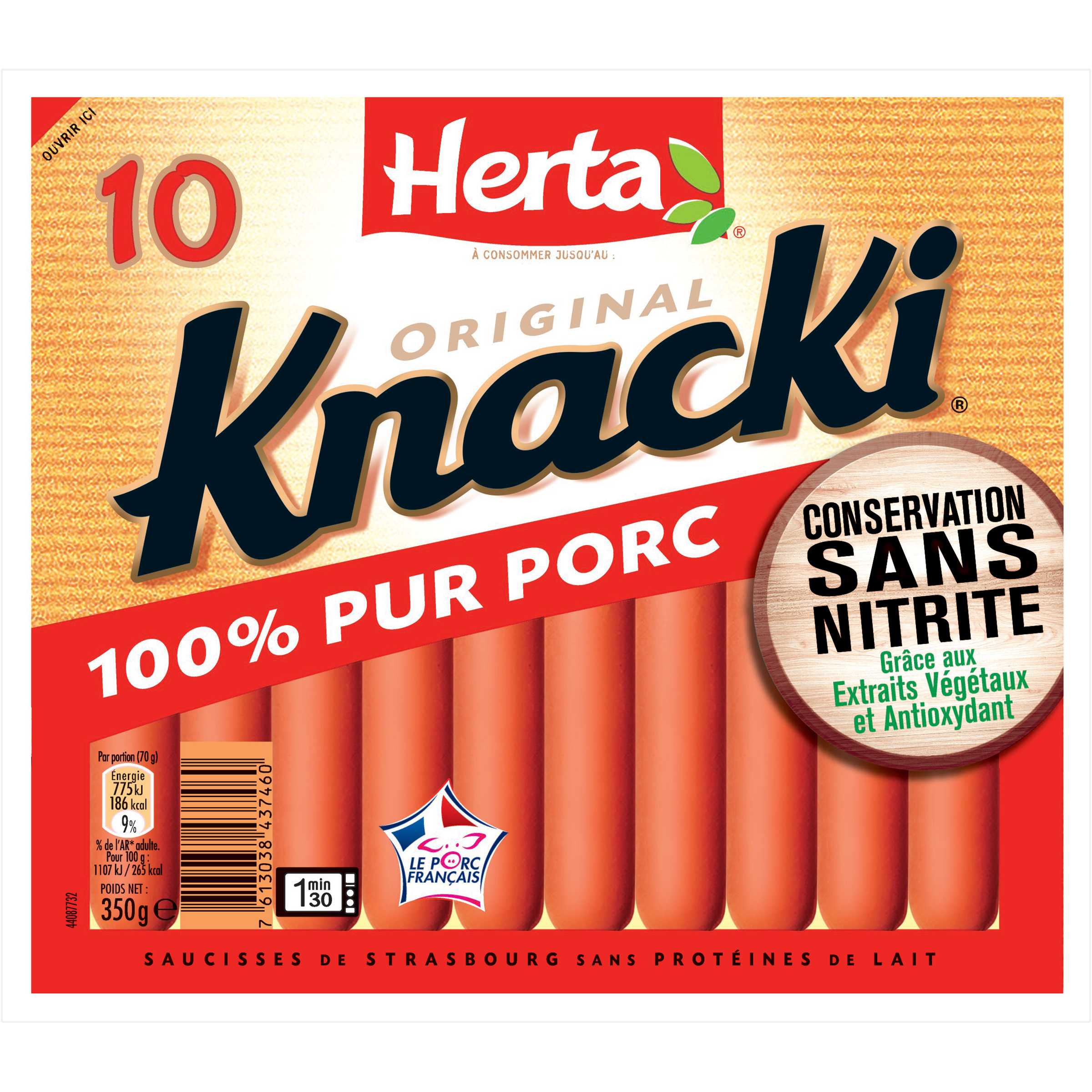 Cuisson optimale au micro-ondes : Placez le sachet fermé sur une assiette à 900 W : Sachet x4 = 50 sec, sachet x6 = 1 min, sachet x10 = 1min30sec. Pour 2 Knacki, placez-les sur une assiette couverte pendant 30 sec. A la casserole 4 min : Plongez les saucisses Knacki dans l'eau frémissante.