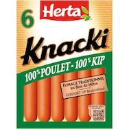 Avec KNACKI Poulet au goût délicatement fumé au bois de hêtre, savourez tout le plaisir de KNACKI avec une viande 100% Poulet. Croquantes à l'extérieur et moelleuses à l'intérieur, elles plaisent à tous les gourmands ! Pour les enfants de moins de 4 ans, coupez la saucisse dans le sens de la longueur puis en tout petits morceaux afin de prévenir les risques d'étouffement.