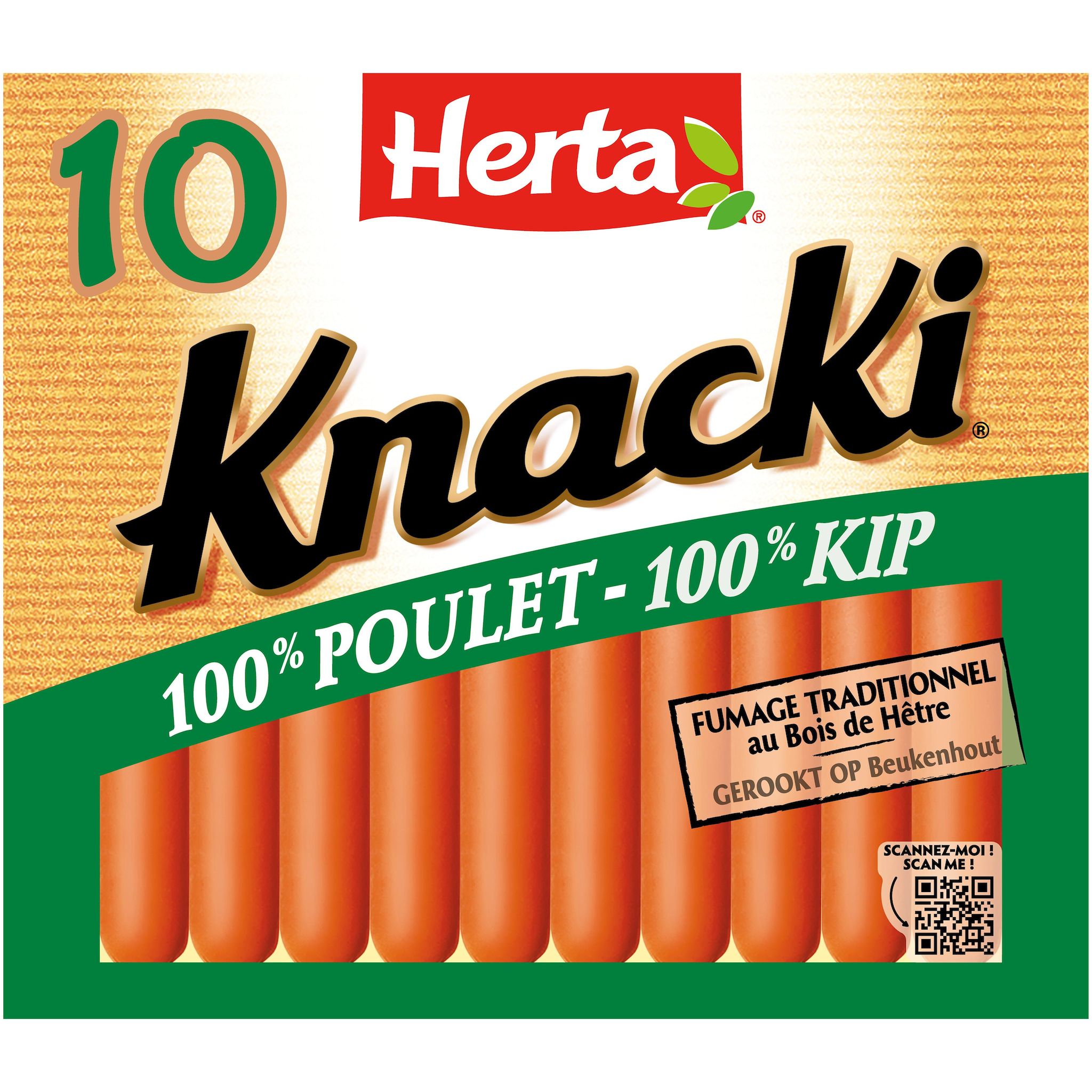 Avec KNACKI Poulet au goût délicatement fumé au bois de hêtre, savourez tout le plaisir de KNACKI avec une viande de qualité 100% Poulet. Des saucisses croquantes à l'extérieur et moelleuses à l'intérieur, qui plaisent à tous les gourmands ! Pour les enfants de moins de 4 ans, coupez la saucisse dans le sens de la longueur puis en tout petits morceaux afin de prévenir les risques d'étouffement.