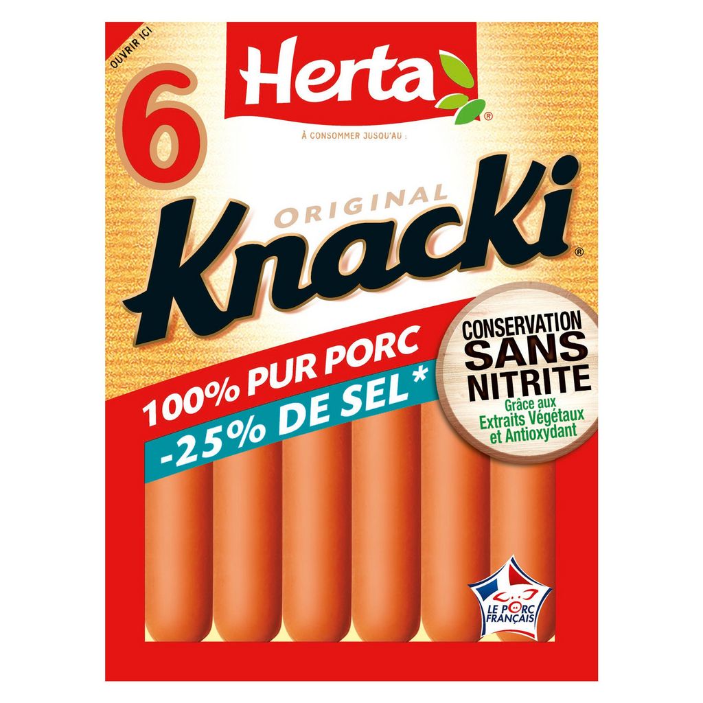 Découvrez la gamme KNACKI® Original Conservation Sans Nitrite grâce aux extraits végétaux et antioxydant sel réduit. La première* gamme de saucisses au mode de conservation sans nitrite grâce aux extraits végétaux et antioxydant à teneur en sel réduite**. Des saucisses croquantes à l'extérieur et moelleuses à l'intérieur, qui plaisent à tous les gourmands ! Pour les enfants de moins de 4 ans, coupez la saucisse dans le sens de la longueur puis en tout petits morceaux afin de prévenir les risques d'étouffement. *1ère marque lancée en grandes surfaces alimentaires à échelle nationale. **Sel réduit de 25% par rapport à la moyenne de la catégorie..