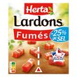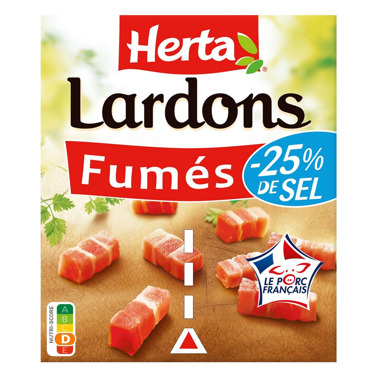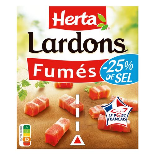 Avec les dés de lardons fumés au bois de hêtre -25% de sel HERTA vous pouvez réaliser vos recettes facilement en un tour de main. De qualité supérieure, pratiques et savoureux, ils sont les alliés indispensables de toutes les cuisinières! Dans les tartes salées, les pizzas, les garnitures… Fondants ou croustillants, en Carbonara ou en salade : régalez-vous avec les dés de lardons HERTA ! (*25% de sel en moins par rapport à la moyenne de la catégorie)