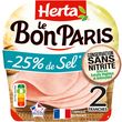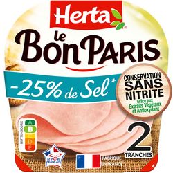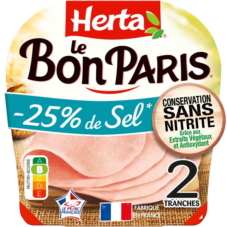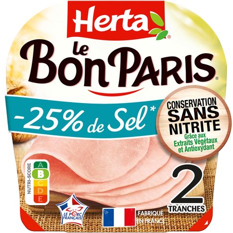 Le jambon de porc LE BON PARIS, c'est le jambon qui plait à toute la famille : un jambon de qualité, pour le plaisir de tous, véritable allié du quotidien. Découvrez LE BON PARIS -25% de Sel*, la recette qui allie plaisir et nutrition, et qui contribue à l'équilibre de toute la famille. * Sel réduit de 25% par rapport à la moyenne de la catégorie.
