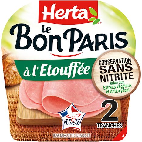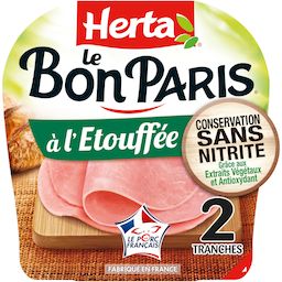 Découvrez la gamme LE BON PARIS Conservation Sans Nitrite : le premier* jambon du marché au mode de conservation sans nitrite, élaboré à partir d'ingrédients d'origine naturelle. Du jambon frais de porc rigoureusement sélectionné, du bouillon travaillé avec des arômes naturels, une pincée de sel, une touche de sucre... et c'est tout ! De belles tranches et une recette à l'Etouffée, qui plairont à toute la famille ! *1ère marque distribuée à l'échelle nationale