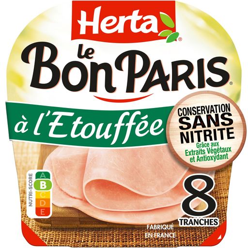 Découvrez la gamme LE BON PARIS Conservation Sans Nitrite : le premier* jambon du marché au mode de conservation sans nitrite, élaboré à partir d'ingrédients d'origine naturelle. Du jambon frais de porc rigoureusement sélectionné, du bouillon travaillé avec des arômes naturels, une pincée de sel, une touche de sucre... et c'est tout ! De belles tranches et une recette à l'Etouffée, qui plairont à toute la famille ! *1ère marque distribuée à l'échelle nationale