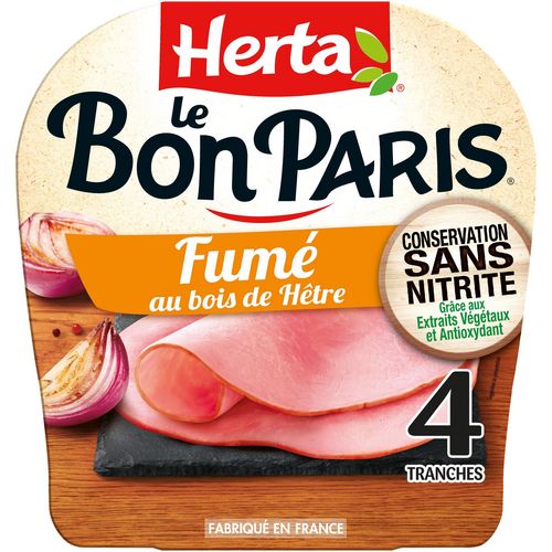 Découvrez la gamme LE BON PARIS Conservation Sans Nitrite : le premier* jambon du marché au mode de conservation sans nitrite, élaboré à partir d'ingrédients d'origine naturelle. Du jambon frais de porc rigoureusement sélectionné, du bouillon travaillé avec des arômes naturels, une pincée de sel, une touche de sucre... et c'est tout ! De belles tranches et une recette fumée, qui plairont à toute la famille ! *1ère marque distribuée à l'échelle nationale