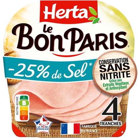 Découvrez la gamme LE BON PARIS Conservation Sans Nitrite grâce aux extraits végétaux et antioxydant sel réduit* : le premier** jambon du marché au mode de conservation sans nitrite grâce aux extraits végétaux et antioxydant à teneur en sel réduite*. De belles tranches et une recette à l'Etouffée, qui plairont à toute la famille ! *Sel réduit de 25% par rapport à la moyenne de la catégorie. **1ère marque distribuée à l'échelle nationale en grande surfaces alimentaires