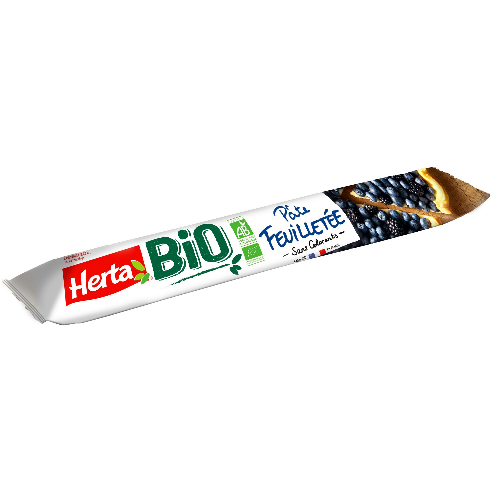 Pâte feuilletée biologique prête à dérouler Découvrez la nouvelle pâte à tarte feuilletée BIO Herta. Des ingrédients d'origine biologique, certifiés AB, pour une pâte à tarte feuilletée moelleuse et croustillante de qualité Herta ! Idéale pour toutes vos envies et toutes vos recettes sucrées ou salées, en entrée, en apéritif, en plat ou encore en dessert !