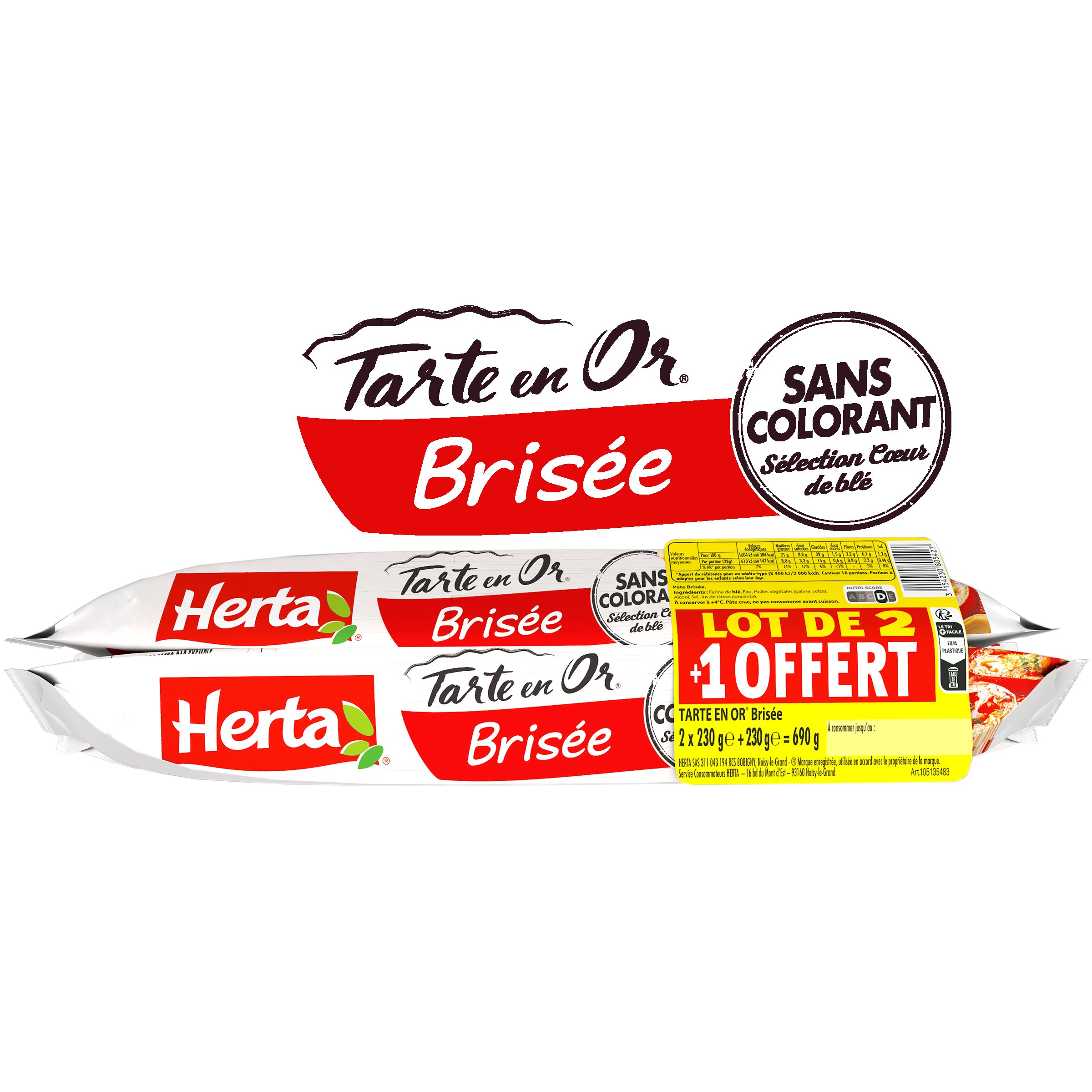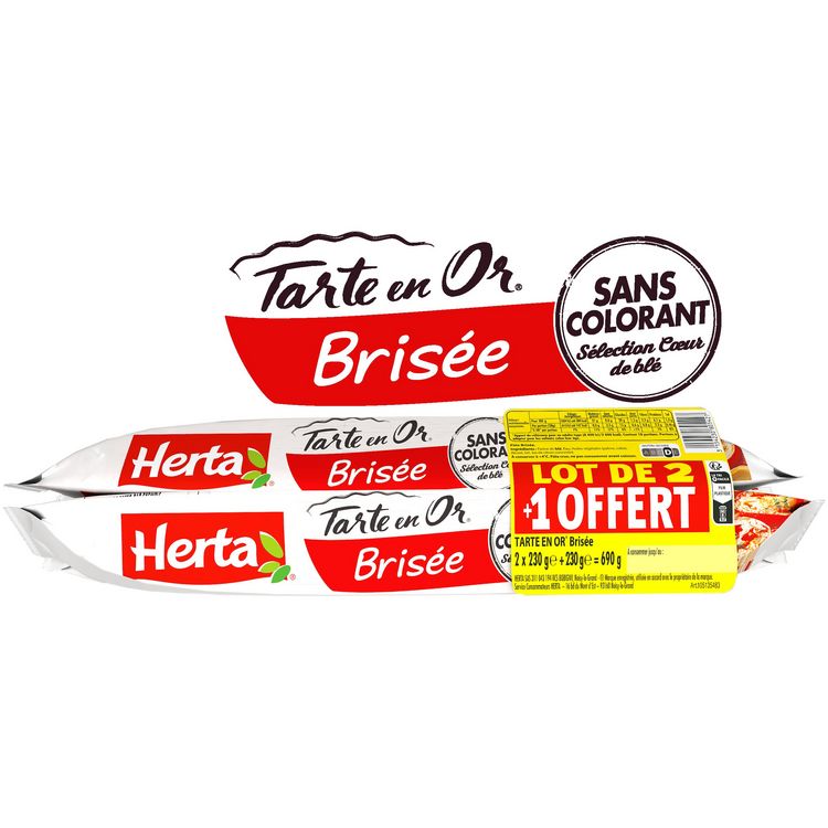 Grâce au savoir-faire HERTA, les pâtes à tarte TARTE EN OR vous permettent de réussir des tartes bien dorées et croustillantes. La garantie d'un résultat rapide pour vos tartes et quiches, avec une gamme de pâtes toutes prêtes à dérouler. La pâte Brisée TARTE EN OR cuit sans sécher ni détremper, en restant bien croquante ! Une vraie alliée pour toutes vos recettes salées ou sucrées !
