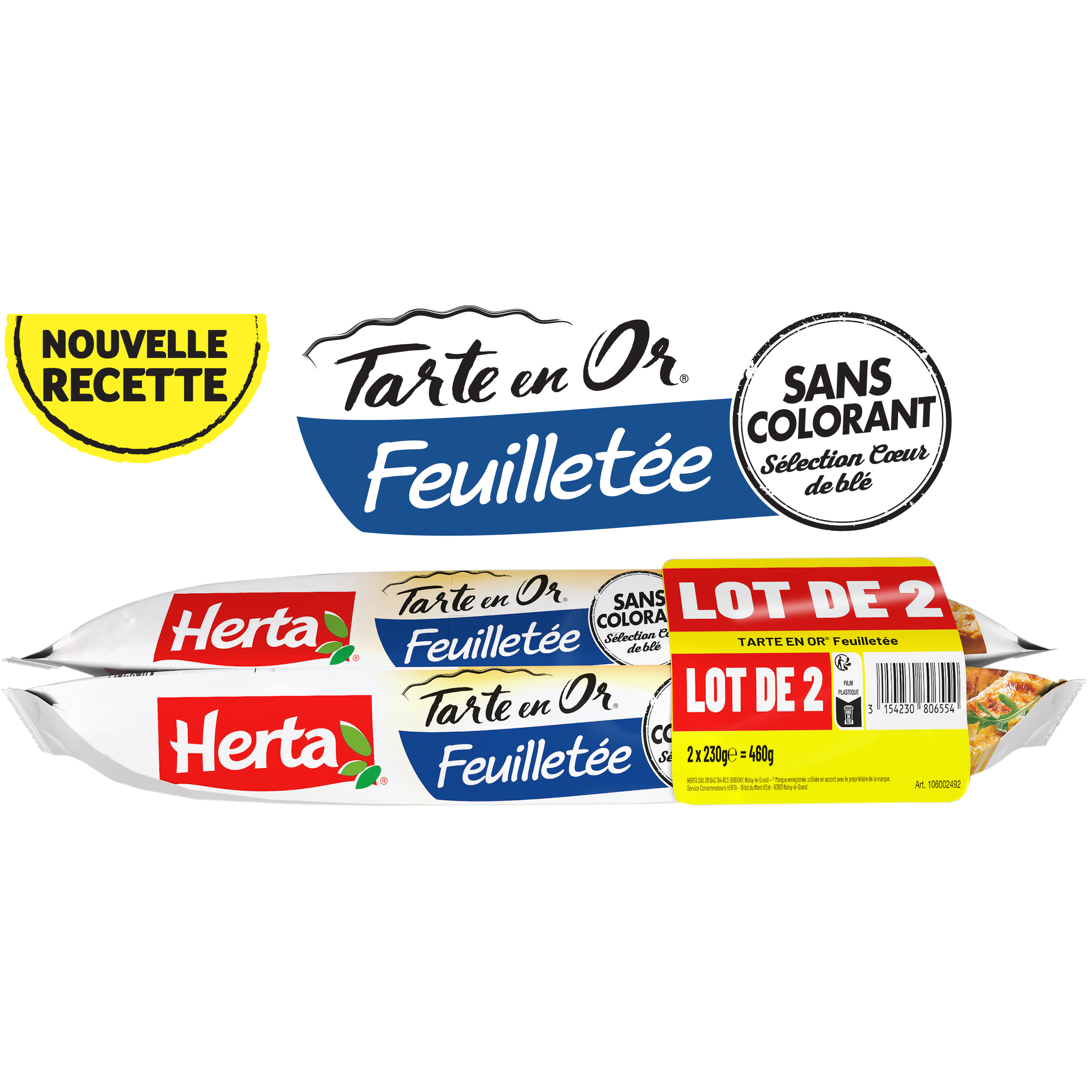 Grâce au savoir-faire HERTA, les pâtes à tarte TARTE EN OR vous permettent de réussir des tartes bien dorées et croustillantes. La garantie d'un résultat parfait et rapide pour vos tartes et quiches, avec une gamme de pâtes toutes prêtes à dérouler. La pâte Feuilletée TARTE EN OR cuit sans sécher ni détremper, en restant bien croquante ! Une vraie alliée pour toutes vos recettes salées ou sucrées !
