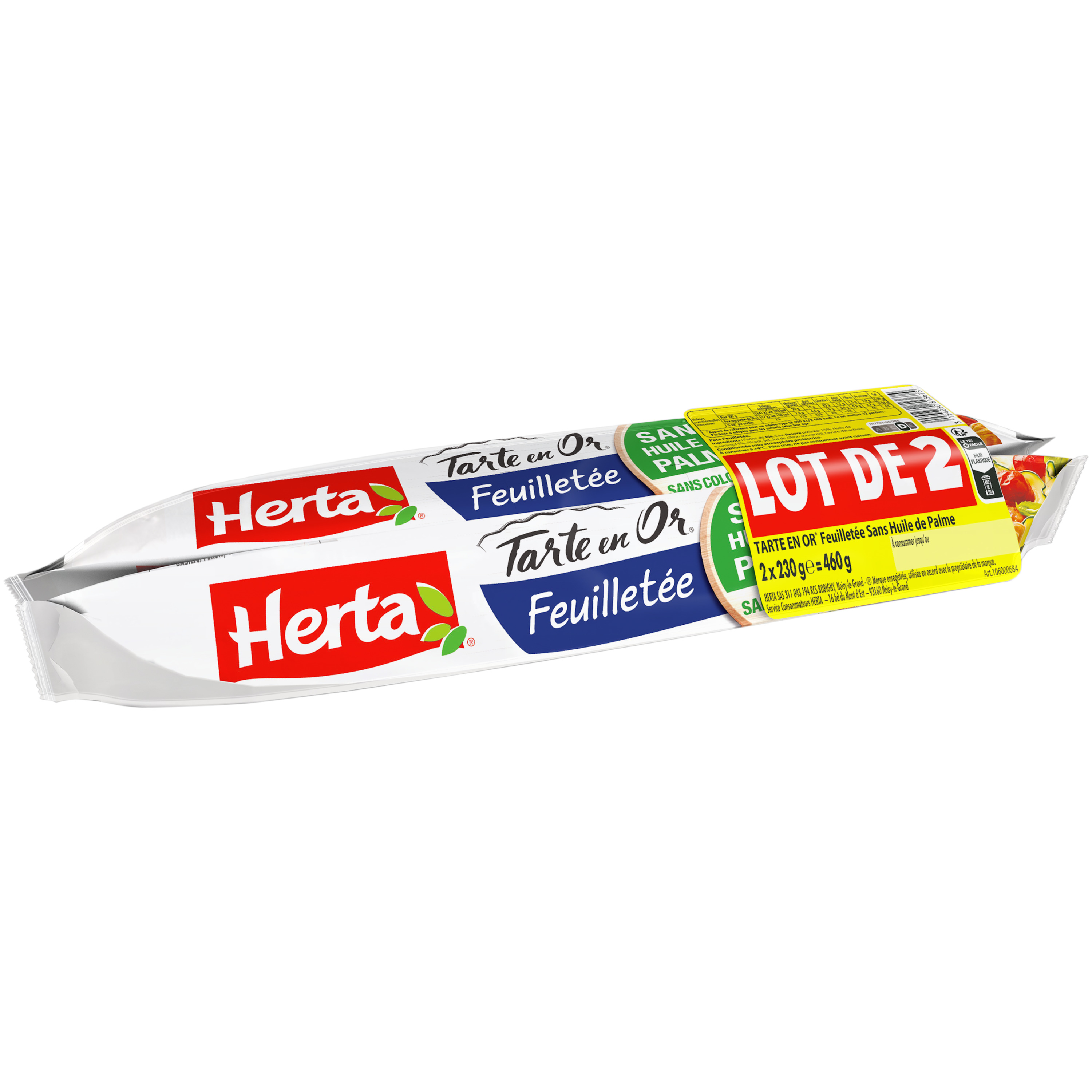Grâce au savoir-faire HERTA, les pâtes à tarte TARTE EN OR vous permettent de réussir des tartes dorées et croustillantes. Sans huile de palme, la pâte Feuilletée TARTE EN OR offre la garantie d'un résultat bon et rapide pour vos tartes et quiches. La pâte TARTE EN OR Feuilletée Sans Huile de Palme est bien croquante ! Une vraie alliée pour toutes vos recettes salées ou sucrées !