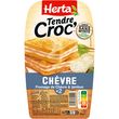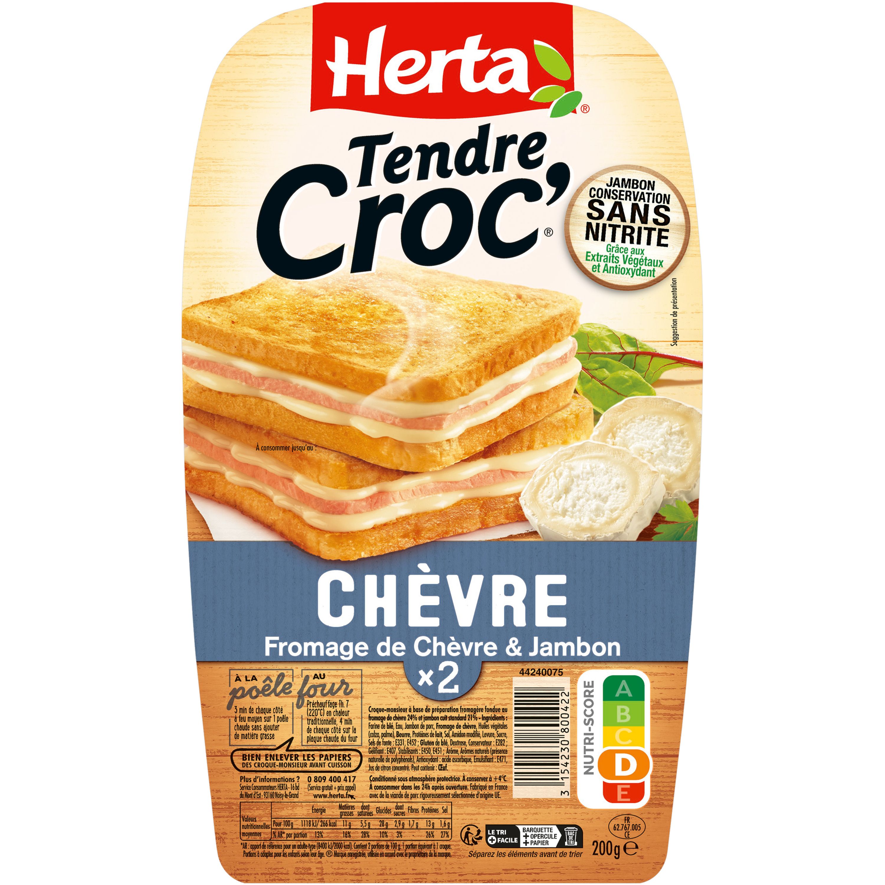 Savourez les croque-monsieur TENDRE CROC' Chèvre : deux tranches de pain de mie à la fois croustillantes et moelleuses avec une garniture fondante au fromage de chèvre et au jambon conservation sans nitrite grâce aux extraits végétaux et antioxydant. Les croque-monsieur de HERTA, c'est la solution pratique pour une pause déjeuner, un dîner gourmand en famille ou entre amis. Au four ou à la poêle, tout le monde se régale !