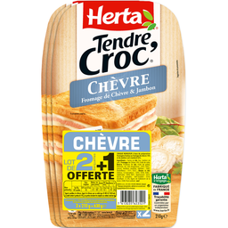 Croque-monsieur à base de préparation fromagère fondue au fromage de chèvre 14% et de jambon cuit standard 22%