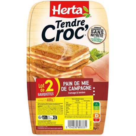 Tendre Croc' croques monsieur au pain de campagne jambon fumé et fromage sans nitrite