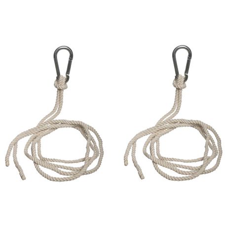 Kit indispensable pour fixer votre hamac ou siège suspendu entre deux arbres.FICHE TECHNIQUE- Mousquetons en acier.- Cordes en coton.- Compatible avec les hamac Yaqui et Guatemala, de la marque Héspéride.CARACTERISTIQUES TECHNIQUES- Dimensions des cordes : L. 300 cm.- Dimensions des mousquetons : L.