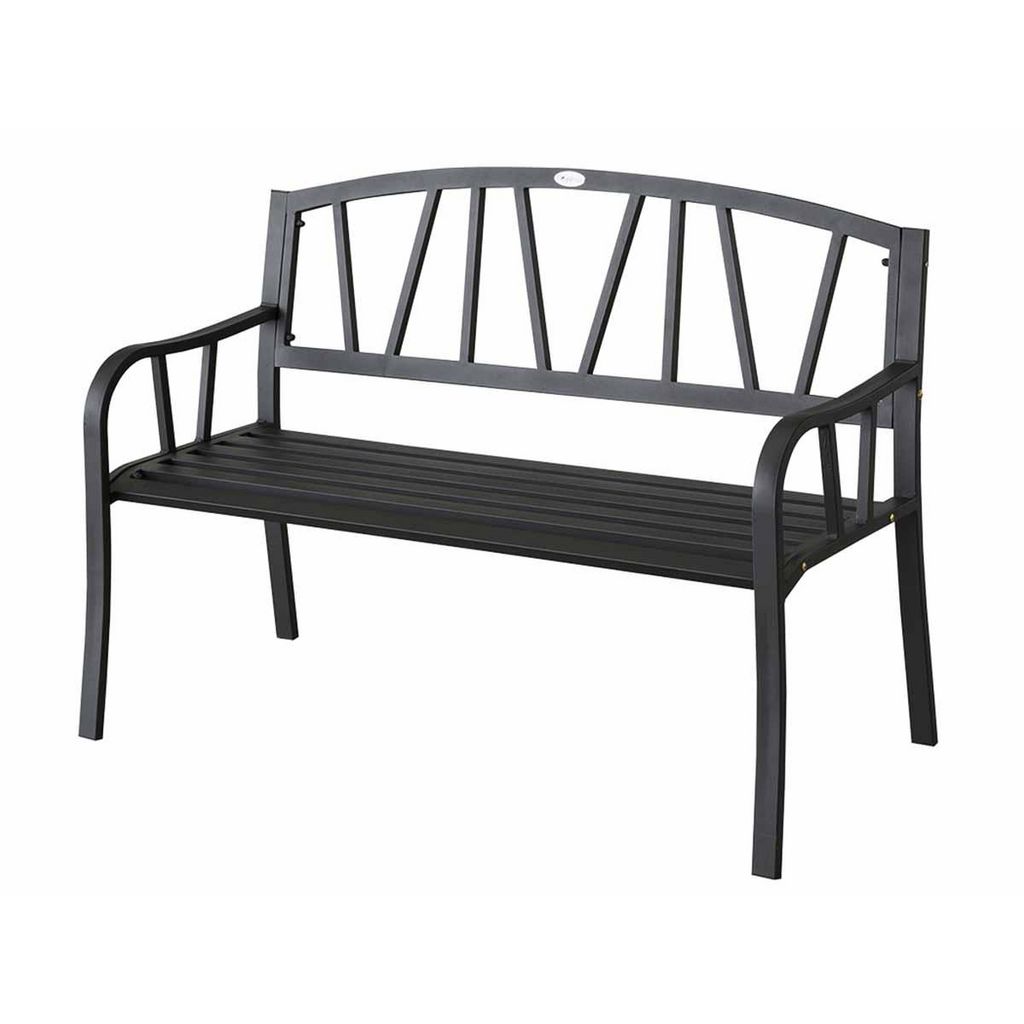 Pour 2 ou 3 personnes, ce banc en métal Alvernia possède de jolis accoudoirs pour votre confort, les lattes et le dossier au style graphique ajouteront une touche design à votre extérieur.