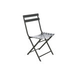 FICHE TECHNIQUE- Chaise pliante pouvant aller se ranger en toute simplicité.- En acier traité epoxy finition mate.- Tient debout une fois pliée pour faciliter le rangement.CARACTERISTIQUES TECHNIQUES- Dimensions dépliée : L. 40 x l. 42 x H. 82 cm.- Dimensions pliée : l. 9 x L. 40 x H. 97 cm.- Poids