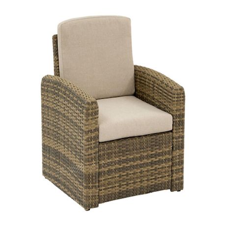 Son revêtement en résine tressée apporte un aspect moderne et naturel, tandis que le coussin d'assise déhoussable en oléfine assure un confort optimal et un nettoyage facile. Pratique, le fauteuil se monte sans outils grâce à un système de clips ingénieux, et ses pieds réglables permettent une parfaite stabilité, même sur sol irrégulier.