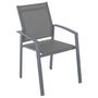 Sobre et élégant, ce fauteuil accompagnera à merveille votre table de jardin. Sa structure empilable vous procurera un gain de place optimal.FICHE TECHNIQUE- Structure de la chaise en aluminium traité époxy.- Assise en texaline.- Sa structure empilable vous procurera un gain de place optimal.CARACTE