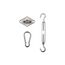 Accrochez vos voiles d'ombrage en toute sérénité grâce à ce kit de fixation. FICHE TECHNIQUE- Kit en acier traité époxy. - Garantie 2 ans. CARACTERISTIQUES TECHNIQUES- Dimensions du tendeur : 20 cm.- Dimension du mousqueton : 8 cm.- Dimension de l'anneau mural : 8,5 cm.- Poids : 0,28 kg.