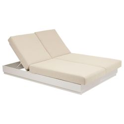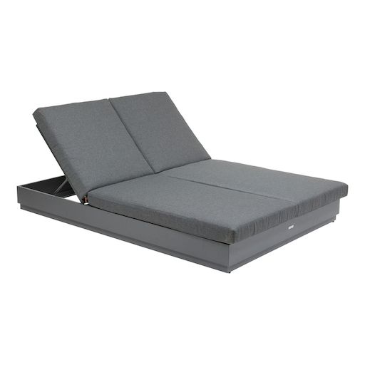 Vous souhaitez aménager le bord d'une piscine dans un style contemporain ? Le lit de piscine ALLURE devrait vous plaire ! Idéal pour profiter de moments en duo confortablement installé au soleil, ce lit de piscine se distingue par sa structure épurée en acier teinté. Indépendants, les deux matelas peuvent être inclinés dans 5 positions, d'une position assise à une inclinaison 100 % allongée pour un repos total. Les pieds ajustables offrent une parfaite stabilité en compensant les irrégularités du sol. Ce lit double peut être agrémenté de tables d'appoint individuelles qui accueilleront vos revues, vos effets et vos boissons. Ajoutez un parasol déporté pour abriter cet espace du soleil et profiter pleinement des beaux jours ! La structure de votre lit de piscine a reçu un traitement époxy contre la rouille et elle s'entretient simplement à l'eau savonneuse. Les matelas sont déhoussables pour être nettoyés et il est recommandé de les stocker au sec en hiver.
