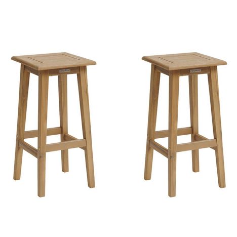 Lot de 2 tabourets haut de jardin Tiwi en acacia - Beige