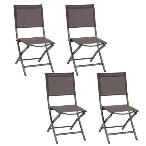 Lot de 4 chaises pliantes en aluminium et texaline ESSENTIA - Wengé et praline