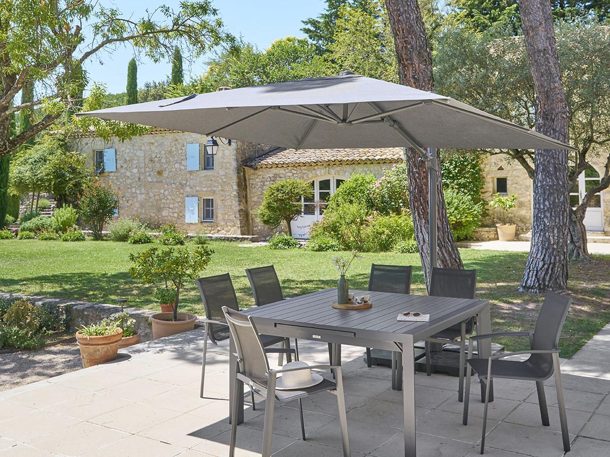 Offrez à votre extérieur un confort optimal et une protection sur-mesure avec le parasol déporté carré Melhia de la marque Hespéride.