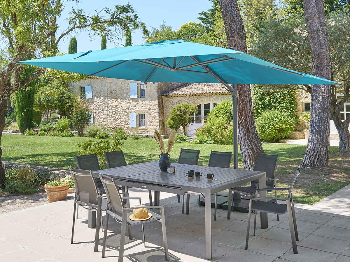 Parasol déporté rectangulaire Melhia bleu canard - 4 x 3 m - Hespéride