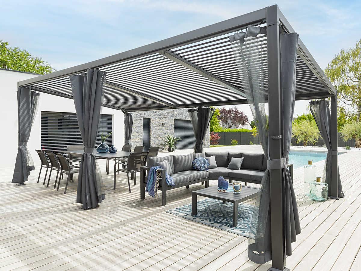 Pergola bioclimatiqueà lattes orientables Avila 6 x 3,5 m aluminium graphite - Hesperide