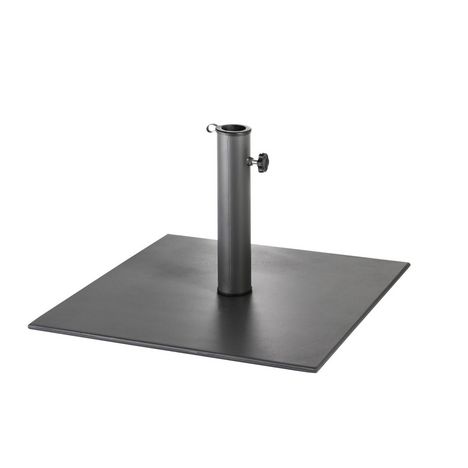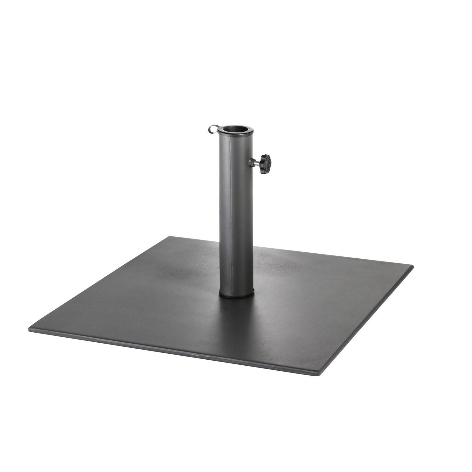 FICHE TECHNIQUE- Pied de parasol en béton et acier traité époxy.- Fixe les parasols à mât central jusqu'à 48 mm de diamètre. - Réglage du diamètre grâce à sa molette de serrage et à ses 3 bagues de réduction. - Garantie 2 ans.CARACTERISTIQUES TECHNIQUES- Dimensions : L. 50 x l. 50 x H. 29 cm.- Poids