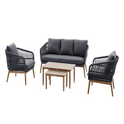 - Composition : 2 tables + 2 fauteuils + 1 canapé