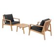 Soleil, détente et boissons fraîches... Le salon de jardin Tiwi vous accompagnera tout l'été pour profiter de votre terrasse ou de votre balcon. Très contemporain, le salon de jardin Tiwi comprend deux fauteuils et une table basse carrée. Sa structure est en bois d'acacia certifié FSC issu de forêts