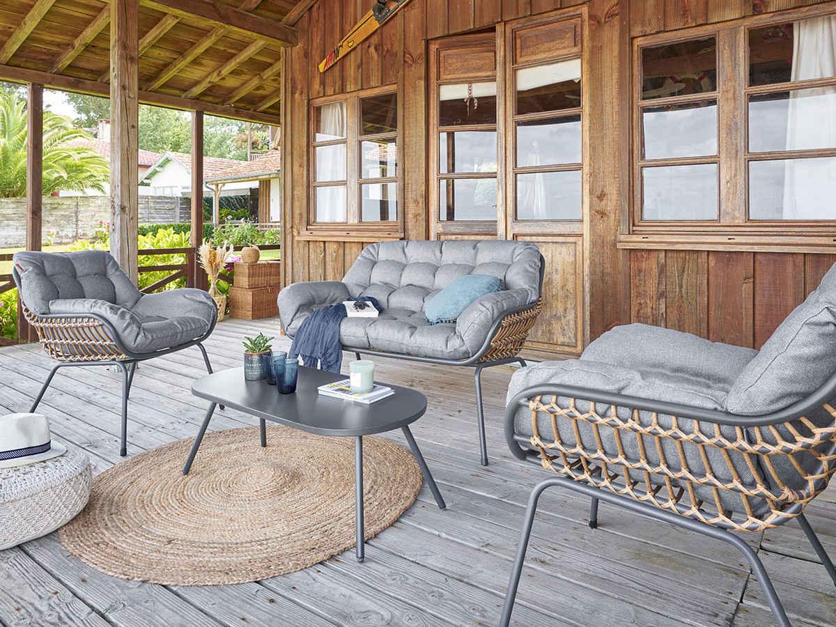 Avec un canapé deux places, deux fauteuils et une table basse assortie, ce salon de jardin est l'essence même du luxe décontracté, idéal pour vos moments de détente en plein air.
