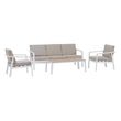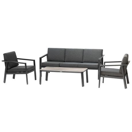 En savoir +Accompagné de vos proches, profitez du plein air avec le salon de jardin Pavane. Avec ses lignes contemporaines, le salon bas de jardin Pavane rendra tout de suite votre terrasse plus chaleureuse. Il est doté d'accoudoirs et d'épais coussins qui vous assureront un bon maintien pendant vos soirées d'été. À l'ombre d'un parasol ou d'une tonnelle, le salon de jardin Pavane accueillera jusqu'à cinq personnes. Cet ensemble complet est composé d'un canapé trois places, de deux fauteuils et d'une table basse. Sa structure en aluminium traité époxy et ses coussins déperlants sont faits pour résister aux pluies légères. L'entretien est facilité grâce aux housses amovibles. Durant l'hiver, remisez vos meubles dans un endroit abrité sous une housse de protection.