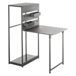 - Fonctionnelle, elle est équipée d'un plateau rabattable, de rangements avec crochets mobiles et d'un espace de rangement pour trois chaises.