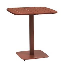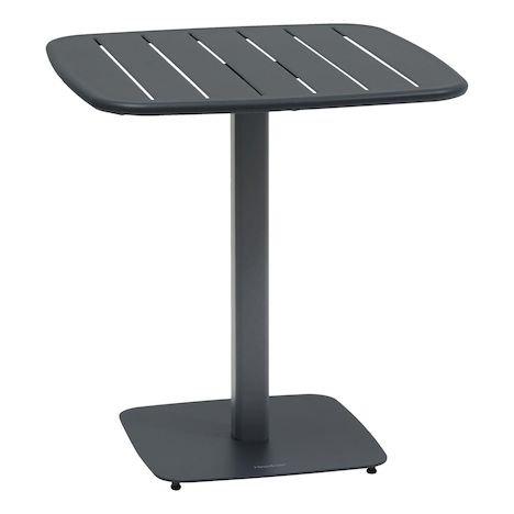 La table de jardin ALEGORIA vous permettra d'aménager un coin repas esthétique et fonctionnel sur un petit espace extérieur. Réalisée en acier teinté, la table de jardin ALEGORIA dispose d'un plateau à lattes et d'une structure aux lignes arrondies. Son pied carré très stable est équipé de capuchons