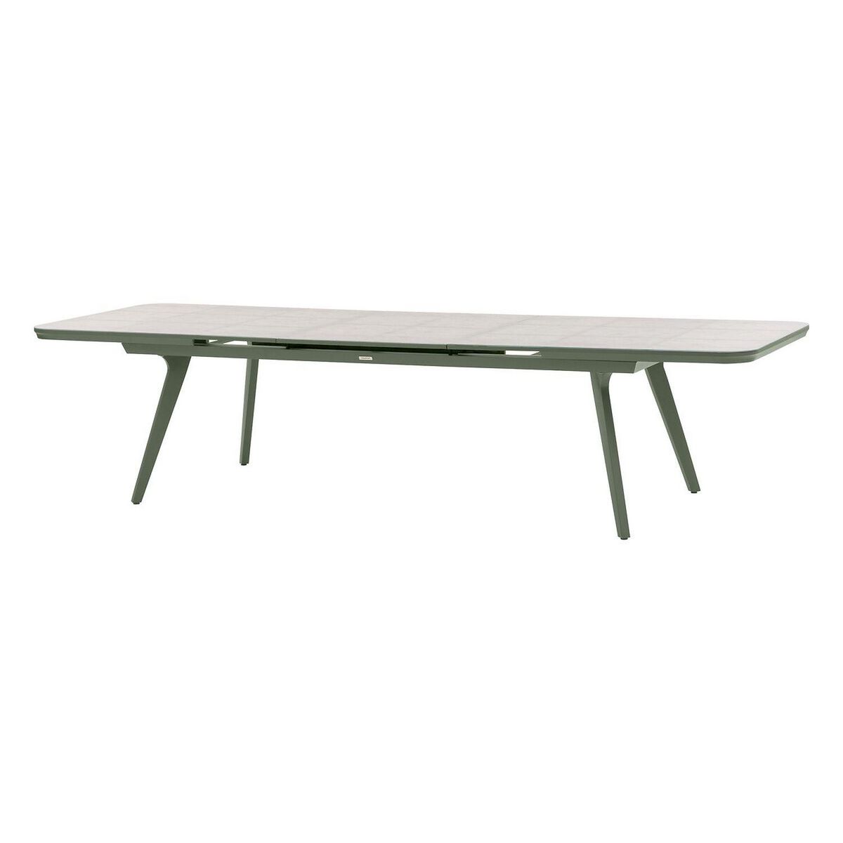 Table de jardin extensible en aluminium et verre 12 places PULPY - Vert laurier et gris granite
