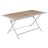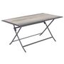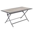Vous souhaitez installer une table gain de place sur votre terrasse ou votre balcon ? La table pliante Azua est faite pour vous ! La table Azua séduit par sa structure qui permet de la plier pour la ranger aisément. Idéale pour quatre personnes, elle sera l'alliée de vos déjeuners ou dîners en extérieur. Le petit plus : elle tient debout lorsque vous la pliez. Les lignes raffinées de cette table en aluminium charment immédiatement. De forme rectangulaire, elle est pourvue d'un plateau rainuré qui est encadré d'un large rebord accentuant son élégance et sa modernité. Pour nettoyer la surface, utilisez de l'eau savonneuse et rincez soigneusement. Grâce à la structure traitée époxy, elle résiste à la rouille et aux UV.
