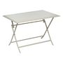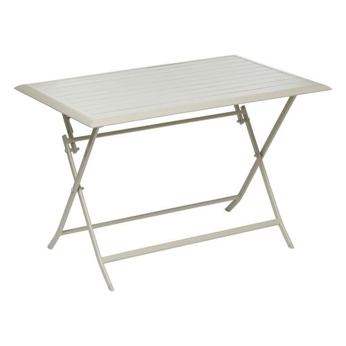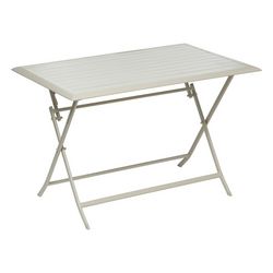 Vous souhaitez installer une table gain de place sur votre terrasse ou votre balcon ? La table pliante Azua est faite pour vous ! La table Azua séduit par sa structure qui permet de la plier pour la ranger aisément. Idéale pour quatre personnes, elle sera l'alliée de vos déjeuners ou dîners en extérieur. Le petit plus : elle tient debout lorsque vous la pliez. Les lignes raffinées de cette table en aluminium charment immédiatement. De forme rectangulaire, elle est pourvue d'un plateau rainuré qui est encadré d'un large rebord accentuant son élégance et sa modernité. Pour nettoyer la surface, utilisez de l'eau savonneuse et rincez soigneusement. Grâce à la structure traitée époxy, elle résiste à la rouille et aux UV.