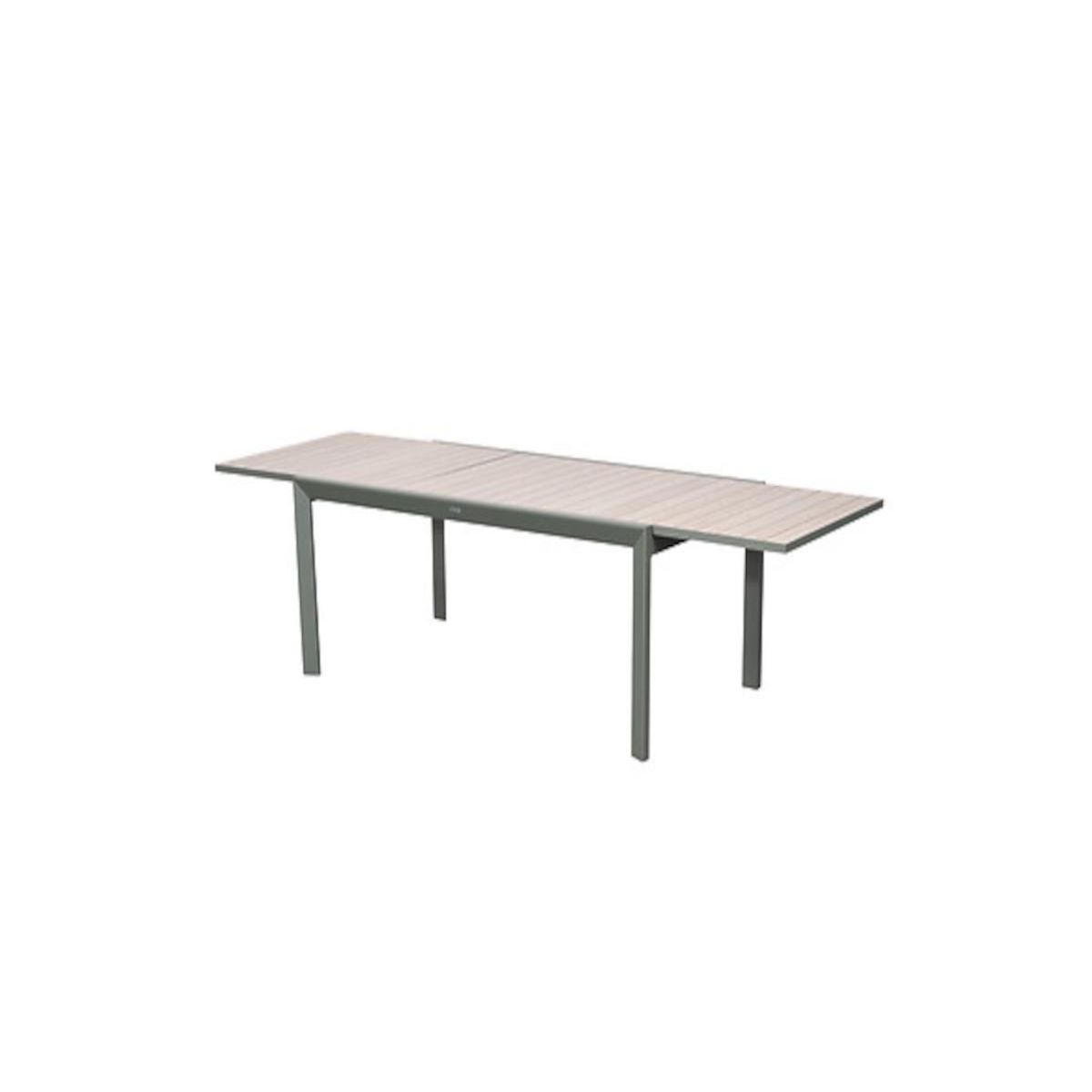 Table de jardin rectangulaire extensible rallonge coulissante alu Evasion Effet bois Lin Laurier - 10/12 places - Hespéride