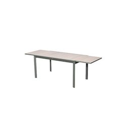 Table de jardin Evasion — Hespéride Grande capacité : accueille jusqu'à 10 personnes, 12 avec la rallonge Rallonge coulissante pratique : passe de 200 cm à 320 cm en un geste Structure aluminium traitée époxy : légère, solide et résistante à la rouille Résistance aux UV : couleur prése